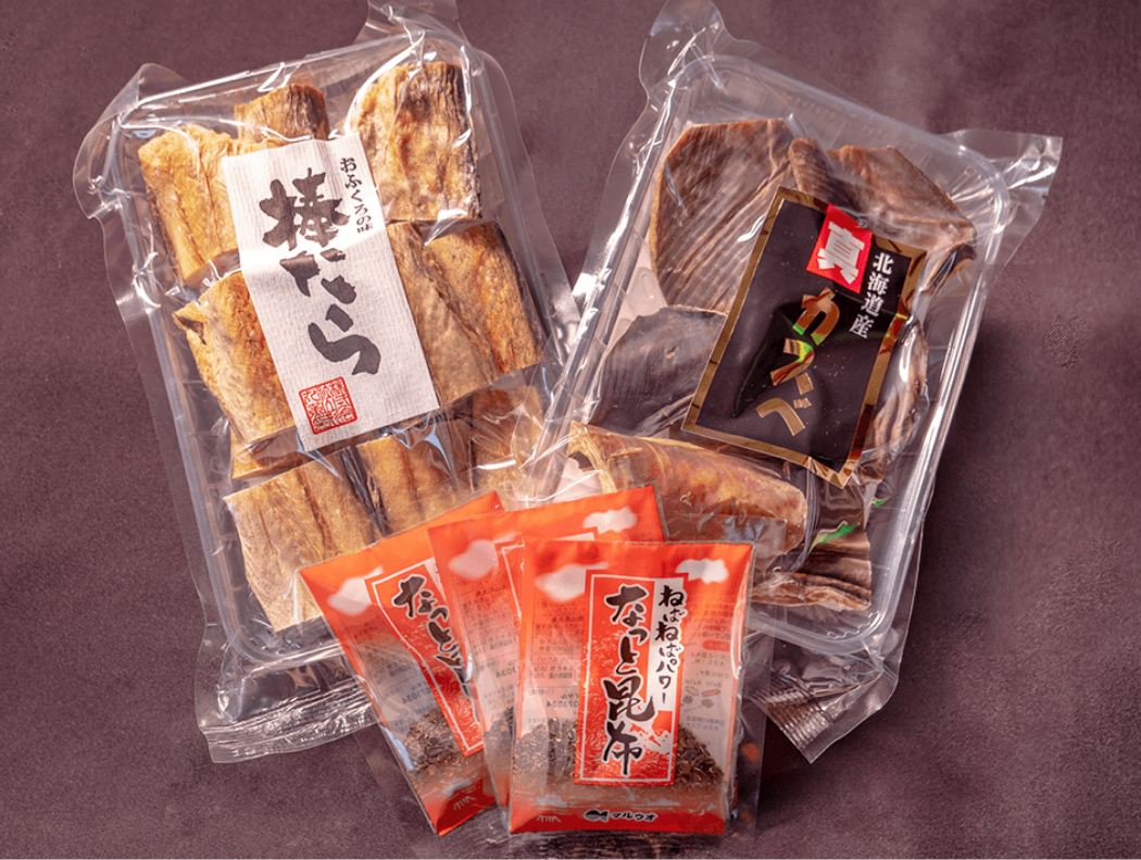 乾物工場では、山形の伝統食でもある「棒たら・かすべ」や山形のだしで使用される「なっと昆布」など、郷土の味の継承を目指した水産乾物製品の加工・販売を行っております。