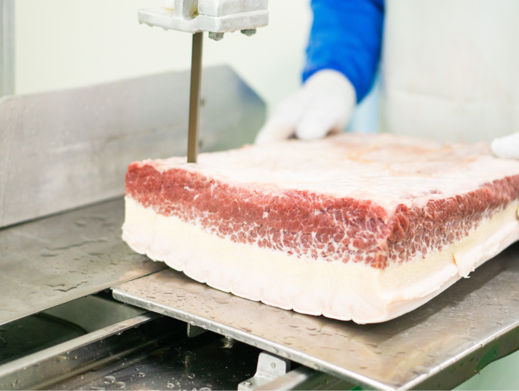 鯨肉は、産地との情報交換や加工指導を通じて、ベーコンに適した部位を選別し調達。